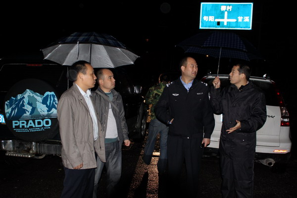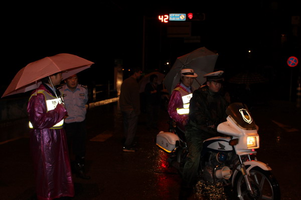 18日晚20时,公安局负责人组织召开由在家局党委班子成员、机关队室负责人、消防、武警主官以及临近部分派出所所长参加的紧急会议,迅速动员安排部署全县尤其是城区的防汛抢险工作。会上,宣读了《旬阳县公安局二0一一年防汛抢险应急方案》,就防汛抢险工作各组职责、工作方法、工作态度工作纪律做专门强调。根据公安机关担负的防汛抢险工作任务,将城区划分为8个责任区,抽调公安民警、交警、武警、消防官兵500余人,组成抢险救援组、城区治安巡逻组、案件侦破组、交通管理组、机关保卫联络宣传组共五个组,由局领导分工负责,划片包干,分兵把口,层层落实负责,做到任务到组,责任到人,领导到位。全力维护稳定、疏导交通、转移财产,组织群众撤离,确保万无一失。全体民警在雨中紧急行动,按照《方案》分工,领导带队,分赴各自工作岗位,一场声势浩大的防汛抢险行动全面展开。