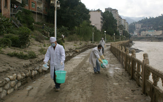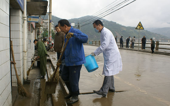 受连日阴雨影响,旬河、汉江洪水暴涨、致城区低洼区域民房进水,污水排放不畅,为有效防止传染病的发生和传播,2011年9月20日,旬阳县疾控中心立即启动洪灾后病媒生物消杀及各项应急预案,卫生局副局长吴万堂、中心副主任一起实地察看了城区受灾情况,中心出动各专业人员对老城城区、小河北、祝尔康大道洪水淹没区进行消杀。投放消毒药粉500公斤,并向居民宣讲洪涝灾害卫生防病常识,发放《洪涝灾害卫生防病常识》1000余份。