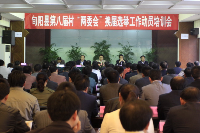 10月17日,旬阳召开村“两委”会换届选举工作动员培训会,全面安排部署村“两委”会换届选举工作。根据县委、县政府的安排,2011年10月进行村级党组织领导班子换届,2011年11月至2012年1月举行村民委员会换届选举。