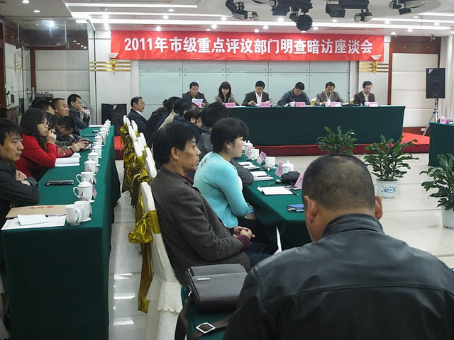 会上,县纠风办主要负责人汇报了全县10个部门政风行风重点评议工作开展情况,县公安局、国土局、环保局、住建局、交通局、国税局、地税局、工商局、质监局、安监局等10个被评议单位负责同志分别就本部门的政风行风建设情况工作作了汇报。市纠风办评议组现场发放调查问卷,征求收集参会的各界代表对10个单位政风行风建设方面存在的问题和意见建议。