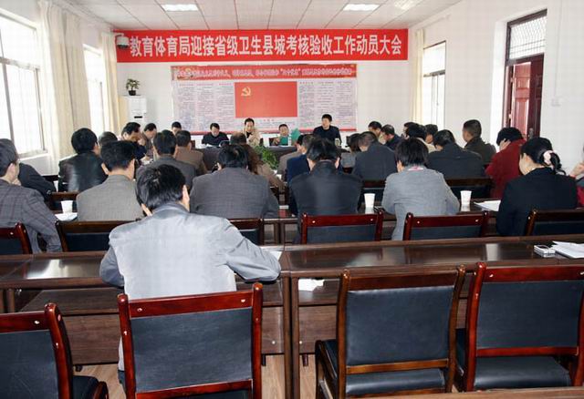 11月14日,县教体局召开迎接省级卫生县城考核验收工作动员大会,迅速贯彻落实县委、县政府迎验誓师大会会议精神,安排部署近期攻坚、冲刺、迎验各项工作。