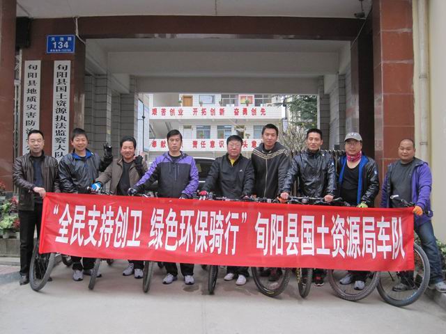 旬阳县国土资源局在全县开展的创建卫生城市活动中,于2011年11月24日派员组成自行车队,参加了县直部门开展的“全民支持创卫 绿色环保骑行”活动。
