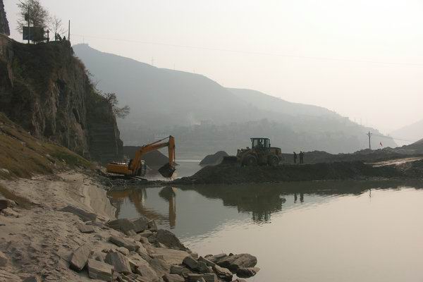 该工程自11月8日开工建设以来,县移民局科学管理,精心组织,强化现场监管,克服重重困难,工程建设各项节点目标顺利推进,目前已修建左岸临时便道500米,共开挖土石方25000立方米,拉运回填料20800立方米,粘土5000立方米。一期围堰粘土和砂砾石回填工程完成,导流目标顺利实现,翻板闸坝左岸基坑开挖设备已准备就绪,坝体基础开挖工程将全面展开。