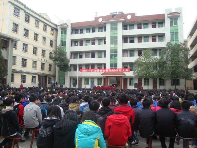在蜀河中学,民警查看了校园周边道路交通安全情况,对安全防护设施、警示牌进行了详细检查,指导老师加强人防、物防的技巧,针对学校没有校车的实际状况,要求学校在学生放学时,实行三个年级分时段安排,避免集中放学造成学生乘车困难,杜绝发生超员、超速等安全隐患,并为6名保卫老师配发了“交通安全协管员”红袖章,与校长签订了交通安全责任状。在持续了两小时的讲座中,民警结合甘肃省、江苏省接连发生的校车交通事故,从学生安全搭乘车辆、识别超速超员车、文明参与交通等方面深入浅出地进行个案剖析,灵活生动,简明实用,赢得广大师生的一阵阵热烈掌声。