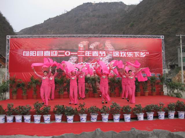 歌舞迎新年,欢乐进乡村。1月5日,旬阳县2012年春节送欢乐下乡活动在刘店村启动。县上领导田丽萍、程海林、华开峰出席启动仪式。