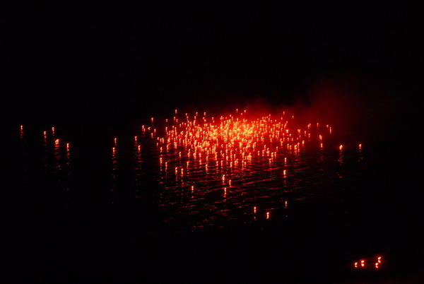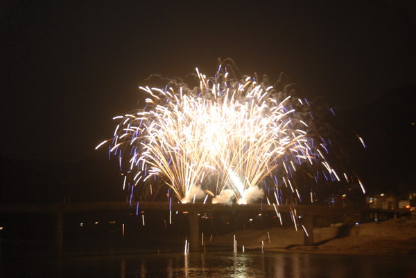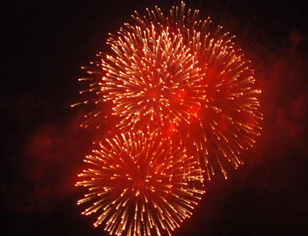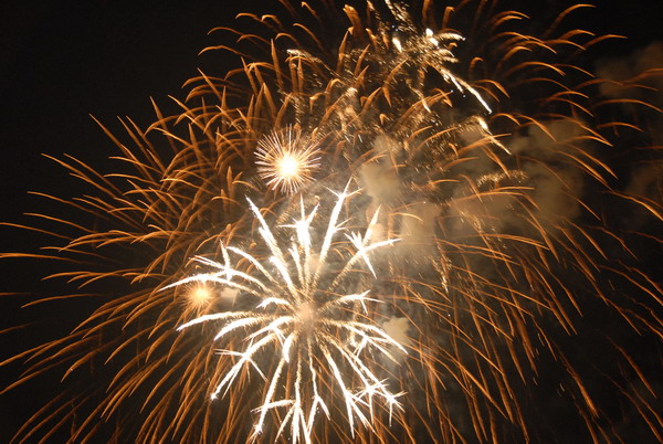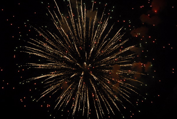 晚上8时许,县长张益民宣布:2012年元宵节焰火晚会开始。紧接着,一束束灿烂的礼花姹紫嫣红、璀璨夺目、直冲云宵,天上人间,相映成趣,分外妖娆……