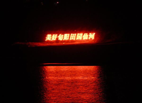 焰火晚会共分为《龙腾盛世》、《春色满园》、《畅想未来》三个篇章。开场流星字幕“美好旬阳,田园仙河”渲染和烘托出了焰火晚会的盛大主题,声声礼炮犹如春雷轰鸣,寓意四十五万旬阳人民庆贺伟大祖国繁荣昌盛,美好旬阳经济社会发展欣欣向荣;随着《春色满园》四个大字喷薄而出,200米金色瀑布飞流而下,波光闪闪,汹涌澎湃,气势雄伟壮观,宛若高天流水一泻千里,与奔流不息的汉江交相辉映;又一次清脆、有力的巨响,《畅想未来》这四个烈焰迸射的大字,把焰火晚会带入一个新的高潮,以680枚高空特效礼花弹交叉发射在300米以上的浩翰夜空,构筑三维立体的视觉效果,用灿烂的语言、壮观的图案、磅礴的气势描绘着旬阳美好的前景。