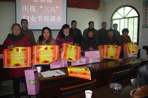 3月5日,金寨镇组织全镇各村的妇代会主任、村干部家属、镇政府机关全体女同志欢聚一堂,集中召开了庆祝“三.八”国际妇女节座谈会,表彰奖励了2011年度在产业建设、孝老爱亲等方面涌现出的“好婆婆”、“好媳妇”、“贤内助”和“巾帼建功先进个人”等39名妇女先进典型。