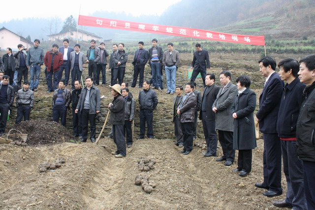 入会人员首先观摩了石门镇的种芋处理现场和播种现场,县农技中心高级农艺师陈和润对魔芋高产栽培技术进行了详细讲解。