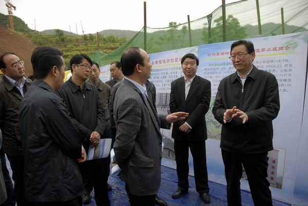 江泽林先后查看了甘溪镇避灾扶贫搬迁安置小区、城关镇党家坝瑞祥家园公租房、廉租房、限价商品房建设和太极城观景台建设情况。