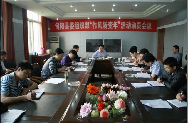 在5月2日全县作风转变年动员大会暨政府工作会议后,县委组织部积极行动,开展干部职工、股站向单位承诺、单位向社会承诺等活动,结合工作实际对作风转变年各项工作进行安排部署。成立以部长为组长、副部长、人才办主任为副组长、各股负责人为成员的作风转变年活动领导小组,领导小组下设办公室,具体负责此项活动的组织实施,迅速制定切实可行的实施方案,把责任明确到个人,广泛接受社会监督。