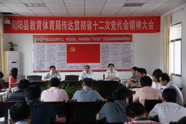 省第十二次党代会召开后,旬阳县教体局迅速行动,采取多种形式,通过集中学习与个人学习,通读报告与专题讨论相结合,迅速掀起学习热潮,把学习贯彻省第十二次党代会精神作为当前重要的政治任务来抓,为全面建设西部强省提供强大的智力支撑和人才支持。以学习贯彻党代会精神为契机,以全面实现教育现代化为目标,围绕中心工作,紧密联系实际,把学习党代会精神与当前开展的作风转变年、师德建设年、三问三解教师大家访活动相结合,进一步培养广大教职员工热爱教育,遵纪守法,关爱学生的高尚师德。以校本研修为切入点,坚持内涵发展,夯实校本,全员参与,优化校本研修途径,促进教师的专业成长,加强教师队伍建设,全面实施素质教育,不断提高教育质量。合理配置资源,促进教育公平,以扩大县城优质教育资源为抓手,带动全县优质均衡发展。积极启动快速推进旬阳中学吕河分校建设,确保年内开工,加速旬阳职业中学迁建后续工程建设,加大城关二中迁建、城关二小扩建和第三幼儿园新建力度,保留并建好每一个村级教学点,基本解决“入园难”“入学难”问题。结合当前工作,认真做好高考备考工作,全面推行农村义务教育学生营养改善计划,抓好中小学安全工作,统筹兼顾,全面促进各项工作稳步开展,为建设教育名县夯实基础。