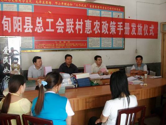 5月30日,县总工会深入到金寨镇寨河社区开展《旬阳县2012年现行惠农政策手册》发放活动。