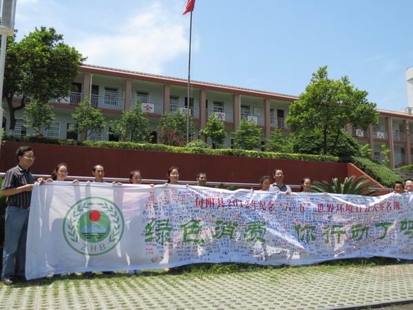 5月30日,为纪念第41个世界环境日,由县环境保护局、县教育体育局联合组织开展的“绿色消费你行动了吗”环保万人签名活动在旬阳县城区学校巡回开展。