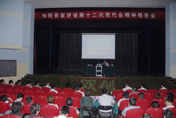 6月5日,旬阳县宣讲省第十二次党代会精神报告会在县文化活动中心举行,市讲师团副团长赵富振做了专题辅导。县委书记邹俊杰,县委副书记田丽萍,县委常委、组织部长范传斌,县委常委、政法委书记陈刚,县委常委、人武部政委李涛等在家县级领导出席了报告会。县委常委、宣传部长程海林主持报告会。全县百余名副科级以上领导干部共同聆听了宣讲。