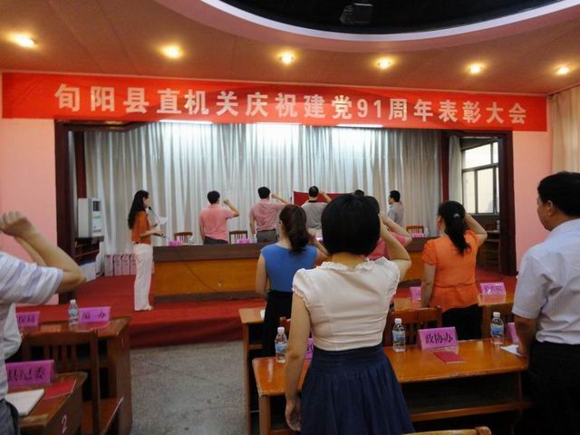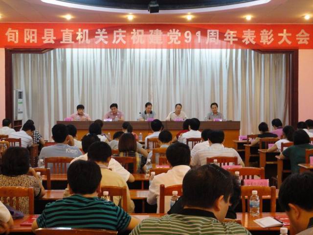 为树立典型、弘扬正气、激励先进,6月27日,旬阳县直机关工委隆重举行庆祝建党91周年表彰大会。县直机关党(总支)支部书记、优秀党务工作者、优秀共产党员共100余人参加了大会。