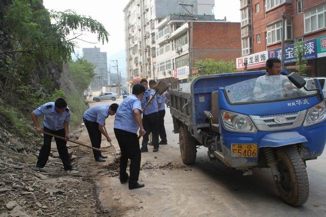 7月21日,县城突降暴雨,导致路面堆积大量淤泥,为了不影响群众的正常出行,同时也避免天晴后灰尘漫天。旬阳县公安局在双创指挥部的统一安排部署下,立即组织抽调公安干警、武警官兵60余名前往双创29片区进行清理淤泥工作。民警和武警官兵们不怕苦、不嫌脏,经过一天紧张的除淤工作,29片区道路基本恢复原貌。全天累计共清理淤泥废土100方,出动挖掘机1辆,处理淤泥垃圾20车次。