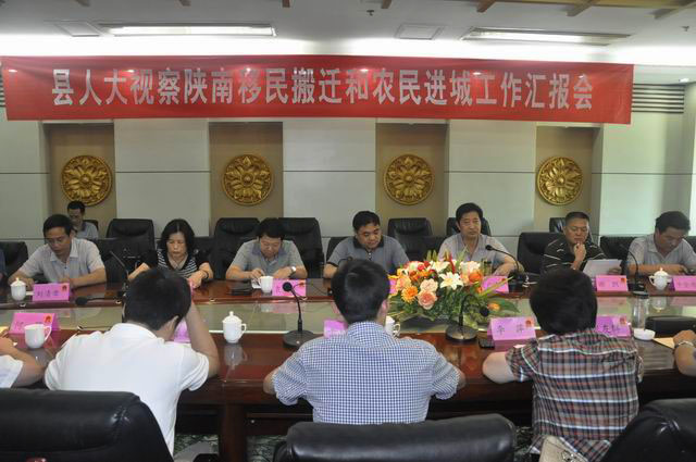 在8月3日召开的县人大视察陕南移民搬迁和农民进城工作座谈会上,县政府就全县陕南移民搬迁安置和农民进城工作作专题汇报。近年来,县委、县政府紧紧围绕“统筹城乡发展,推进六化进程”主题,坚持“政府引导、农民自愿、政策鼓励、市场推动、有序推进”的原则,夯实措施,扎实推进,取得了阶段性成效。三年来,全县累计有9628户37523名农村居民率先进城定居,核发进城落户卡、进城居住卡7000余张,其中2010年农民进城11098人 ,2011年农民进城16666人 ,今年元至七月份进城9759人 。分别完成市上下达目标任务的170.7%、126.2 % 、73.9 %,超额完成年度考核任务。2011年陕南移民工作全面完成了省市分配我县的3500户搬迁安置任务。全县2012年规划建设移民安置小区和集中安置点76个,其中2011年续建项目40个,当年新建项目36个,集中安置3257户,如期完工可确保今年集中安置比例达到80%以上。据6月份进度统计,全县开工建房2884户,占任务的72%;计划建集中安置点76个,主体开工建设46个,计划集中安置3438户,集中安置开工建房户2136户,占任务的62%;分散安置计划837户,开工建房748户,占任务的89%。
