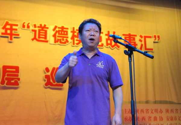 据了解,陕西省2012年“道德模范故事汇”基层巡演由省文明办、省文联主办,省曲协承办。演出中,省曲艺界的众多名家新秀运用陕西快板、故事等群众喜闻乐见的曲艺形式,给全县干群师生带来了一个个感人至深的故事。坚守华山气象站19年的于进江事迹的故事、地方特色鲜明的陕西快书《听我说说郭随宝》等节目,向现场观众展现了道德模范们的先进事迹,讴歌了他们的高尚品质,引起了强烈的共鸣。巡演现场,大家纷纷表示,观看聆听了道德模范们地光荣事迹,进行了一次心灵的洗礼,在以后的工作和生活中将以道德模范为榜样,学习楷模事迹,弘扬道德新风,积极投身精神文明创建,为建设美好旬阳多做贡献。