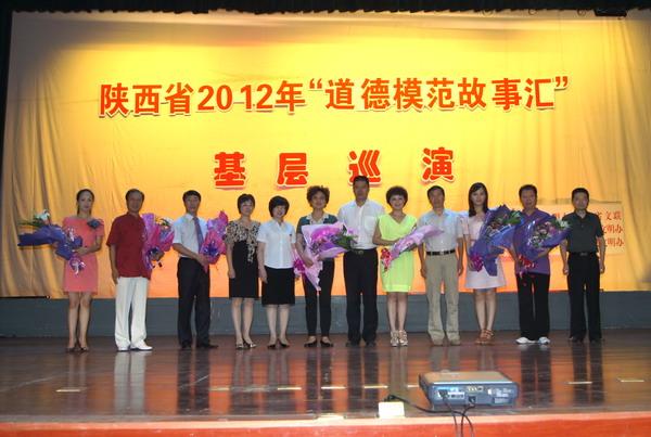 8月25日,陕西省2012年“道德模范故事汇”基层巡演活动在县城宣传文化中心举行。县上领导程海林、华开锋、李萍、向敏毅与全县300余名机关干部、社区群众和学校师生代表共同观看了巡演节目。