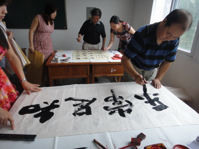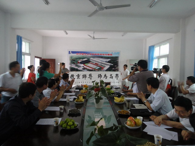 第28个教师节到来之际,安康市政府副秘书长、办公室主任赵立根携市县知名书法家、企业家一行来到市政府办对口支教学校——旬阳县吕河镇中心学校,与全校教师欢聚一堂,挥毫泼墨,共同庆祝第28个教师节。