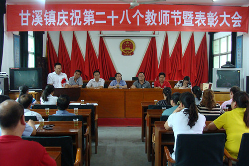 金风送爽收获季,尊师重教浓浓情。9月10日,甘溪镇召开第二十八个教师节暨表彰大会。对一年来涌现出来的 “明星校长” “先进教育工作者” “优秀教师” “师德标兵”30名教师进行了表彰奖励。