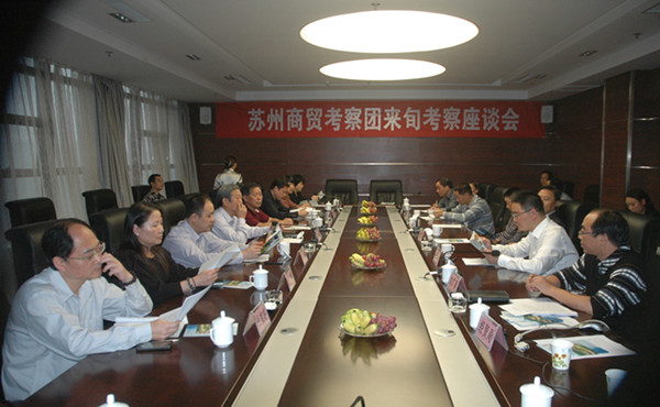 9月22至25日,苏州经贸考察团一行来旬考察投资环境,县委常委、副县长王武臣,县委正县级咨询员陈昌学陪同进行了考察,并就投资政策、环境及有关事宜进行了相互沟通和交流。