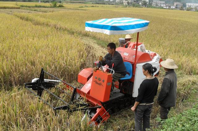 近年来,随着水泉坪农业园区建设的全面推进,农机使用在科技推广中作用凸显,镇上在推广新品种、新技术的同时,也利用农机补贴的惠农政策引进新型农业机械, 先后为水泉坪安装了频振式杀虫灯10台,太阳能杀虫灯15台,配备了大功率机动喷雾喷粉机2台。今年,又鼓励桥上村村民付某购买联合收割机,付某算了一下账,“买一部收割机要7万多块,政府给补2万多块,自己只掏5万块,一年收一季稻子和一季油菜,就能挣到4万块,明年本钱就回来了,这帐咋算都划得来”,在购买机器并进行了安全操作培训后,他喜滋滋的开着机器进田工作了。预计在政策和市场的双向驱动下,明年水泉坪的联合收割机数量有望增至5台以上。