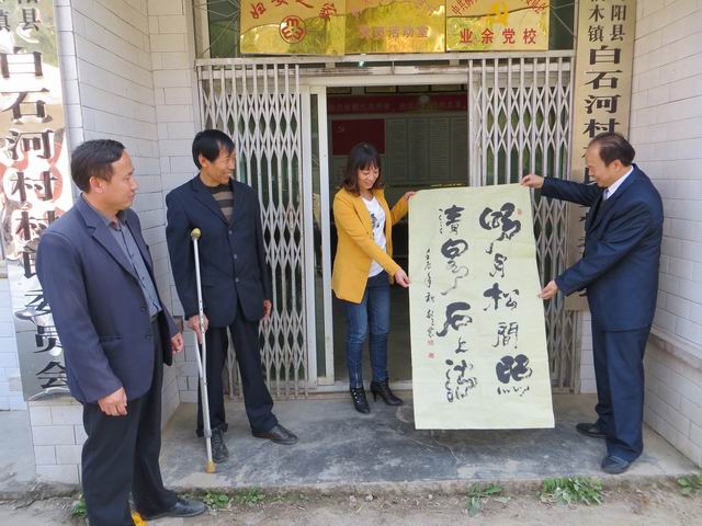 白石河村位居于旬阳县北部,距离旬阳县城40多公里,境内山清水秀,自然风景独特,海拔2000多米,盘山公路盘居在奇峰竣岭之中,山清水秀,风景如画。近年来,白石河村依托本村文化名人的品牌,以及有利的景区,大力向外推荐本村的资源,发展乡村旅游,提高本村知名度。采风期间,省文化厅省文化艺术志总编审吴建华、县妇联,桐木镇等领导参加了书画进乡村活动,县书画协会的老师不顾车马劳顿,现场作画、题字,用自己的作品表达了他们对白石河村的爱意。摄影家们也深入到田间地头,用手中的相机记录着白石河村的美景。