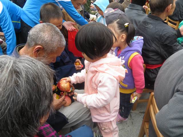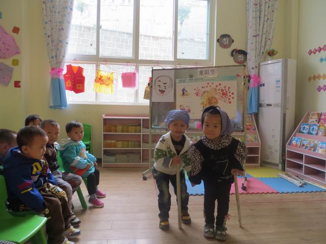 首先园长代表旬阳县第三幼儿园给老人们送去了体育、娱乐用品,祝愿他们晚年生活幸福、健康、快乐。接着,三幼的孩子们献上了精彩的节目,《孔雀飞来》、《聪明宝贝》等舞蹈,博得了老人们阵阵掌声,他们的脸上绽放出童真般灿烂的笑容,一幅共享天伦之乐的画面呈现于此。“为爷爷奶奶送礼物”则把敬老活动推向了高潮,当孩子们把精心准备的礼物送到老人手上,那一声声“祝爷爷奶奶身体健康,希望爷爷奶奶长寿。”的话语激起了他们感动的泪花,老人们紧紧抱着孩子依恋不舍。