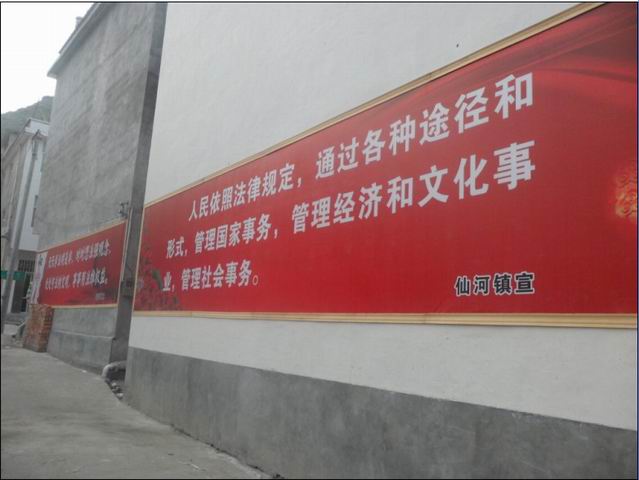 仙河镇自“六五”普法以来,大力推进法治文化建设,在镇域范围内进行法治文化进社区、进校园、进企业等活动,着力构建法治社会。近日,该镇投入资金在该镇的集镇中心地段张贴法治宣传标语,倾力打造法治文化一条街,使全镇法治文化建设跃上一个新台阶。