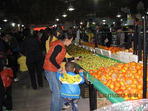 11 月1日,旬阳县太极城水果超市前热闹非凡,家长携幼儿准时到达超市门前,在教师的组织下有序地进入了超市,开始了参观之旅。小朋友们一看见色彩鲜艳,种类繁多的水果,都沸腾了起来。“这是橘子,我吃过的。”“这是苹果,我家里有的。”“这是香蕉,我最喜欢吃了”……都叽叽喳喳说个不停,有的小可爱们还情不自禁地俯下身子闻闻水果的香味、或是用胖嘟嘟的小手摸一摸它的形状。有些家长也有意识地引导孩子比较同一水果的不同品种,以及相似水果的不同特点。在看一看、比一比、摸一摸的过程中,孩子们对于一些常见的水果之间的区别有了更深一步的了解;对于一些不常见的水果,也有了初步的认识;同时也使幼儿感受到了水果种类的繁多。