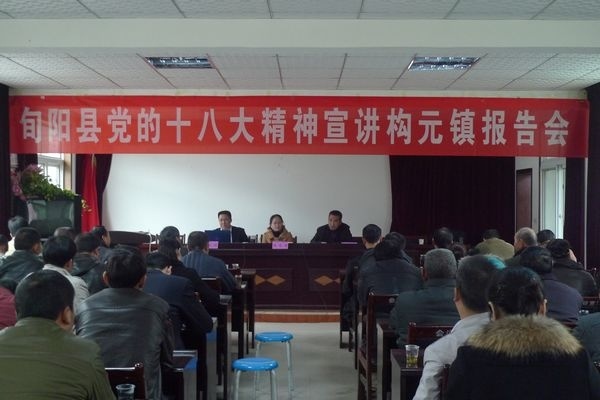 在构元镇,县委党校高级讲师刘福斌通过深刻领会党的十八大历史地位和重要意义;深刻领会科学发展观的新内涵和新要求;深刻领会中国特色社会主义的新思想、新论断;深刻领会实现全面建设小康社会的新要求;深刻领会中国特色社会主义经济建设、政治建设、文化建设、社会和生态文明建设的重大部署;深刻领会全面提高党的建设科学化水平的重大任务六个方面,详细讲解了十八大报告的基本框架、主要内容和重要任务,对十八大报告提出的新思想新观点新论断作了深入、系统、全面解读。