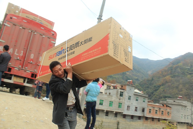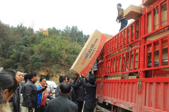 11月25日,红军镇领导干部加班加点,把65台太阳能及时送到搬迁户的手中,被老百姓称为“送温暖工程”正在有序进行中。