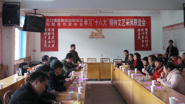 11月23日,关口镇政协统战联络组、旬阳县作家协会在关口镇举行“学习十八大精神”文艺采风联谊活动,广大艺术家乘着十八大的东风,感受关口镇旖旎壮丽的自然景色,为发展关口旅游建言献策。