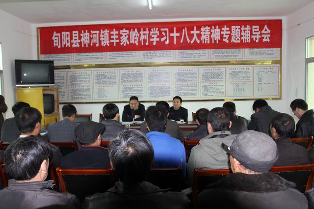 11月28日,副市长杜寿平深入旬阳县神河镇丰家岭村,向基层党员干部宣讲党的十八大精神。县委常委、纪委书记张世波陪同出席了宣讲会。