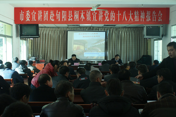 12月4日,桐木镇邀请市委宣讲团张运青教授就十八大精神学习宣传举办了专题报告会。该镇全体党员干部,各村党支部书记、村主任、镇属各单位负责人共83人聆听了此次报告。会上,张运青作了题为《学习贯彻十八大精神 推进美好安康建设》的报告,回顾了十八大召开的盛况,思路清晰、深入浅出的阐述了十八大的主要精神以及召开的重大意义,张运青还理论联系实际,提出了建设美好安康的思路和举措。