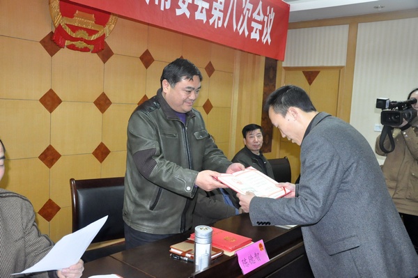 县人大常委会主任陈德智对新任命的几位同志颁发任命书,并对他们在新的岗位上开展工作提出要求和希望:一要树立高度的政治责任感,热爱人大工作。要提高对人民代表大会制度这一根本政治制度的认识,学习十八大对人大工作的新要求,增强人大及人大工作的政治责任感,牢固树立人大意识,人民意识,提高对人大工作的热情,全身心投入工作。二要继续加强学习,成为人大工作的行家里手。人大工作承担着保证宪法和法律实施的责任,涉及的知识面广,政策性、程序性较强,人大干部要系统学习人大基本理论和人大相关法律法规知识,形成适应人大工作的知识结构,为规范履职打好基础。三要勤勉务实,扎实工作,抢抓落实。要坚持实事求是的思想路线,端正作风,勤奋工作;要说实话、办实事、求实效,切忌不求进取,不办实事,夸夸其谈;要吃苦耐劳,承担责任。四要廉洁自律,开拓奋进。严守党风廉政纪律,更加精诚团结,树立人大机关一盘棋思想,加强工委之间,部门之间的协作,形成工作合力;要着眼于人大工作的现实,吃透情况,积极探索。新到任的同志要精心谋划来年工作,迅速上手,谋划开局。全体人大干部共同努力,开创来年人大工作新局面。