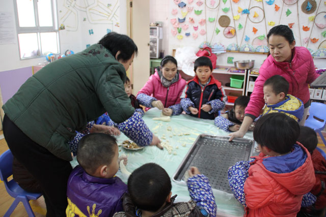 本次活动,各班级通过播放多媒体课件、念儿歌、讲故事等多种方式向孩子们介绍了冬至这个传统节气习俗的由来。认识了包饺子所需要的原料、工具以及包饺子的方法。并通过老师家长的示范,小朋友们也都动起手来,一手拿擀面杖,一手拿面团,一会功夫就包出了许多饺子,虽然样子千奇百怪,但孩子们享受了劳动成果,共尝“冬至美餐”。