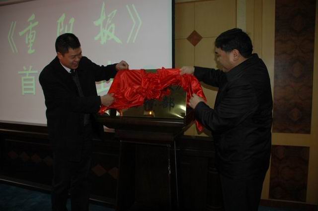12月26日上午,由县人大常委会机关老干部办公室主办的《重阳报》顺利创刊成功,首发仪式在县人大机关会议室隆重举行。县人大常委会主任陈德智,县委常委、宣传部长程海林出席仪式并为《重阳报》编辑部揭牌。县人大常委会副主任熊生明出席并主持首发仪式,副主任杨纪元、周广清以及机关离退休老干部出席了首发仪式,县人大机关各委办、县老干局、老龄办、老教协会、老体协会的负责同志参加了首发仪式。