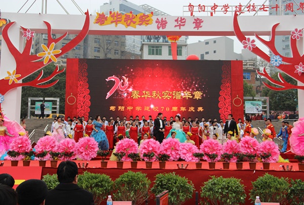 12月28日,旬阳中学在祝尔慷广场隆重举行建校七十周年庆典活动,两千多名嘉宾、校友和师生欢聚一堂,共同庆祝旬阳中学七十华诞。马孝芳、张全明、杜寿平、徐铁军、邹俊杰、陈德智、张益民、王惠等市县领导应邀出席庆典仪式。