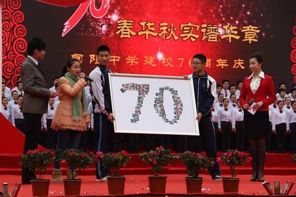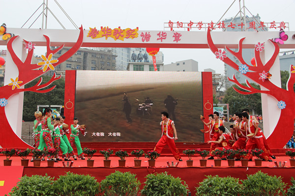 庆典在锣鼓队表演的《盛世锣鼓响太极》中拉开帷幕,岁月如歌、青春风采、桃李芬芳三个篇章讲述了旬阳中学70年的风雨历程中,不断在传承与创新中谋发展,在内涵与品质上求突破,展现了学生朝气蓬勃、健康向上的青春风貌和教师爱岗敬业、无私奉献的师德风范。最后活动在旬中新创作的校歌《我们是你的荣华》中圆满落下帷幕。