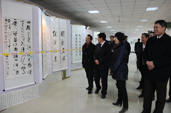 庆典活动之前,省市领导、嘉宾、校友参观了旬阳中学校园和书画展室。