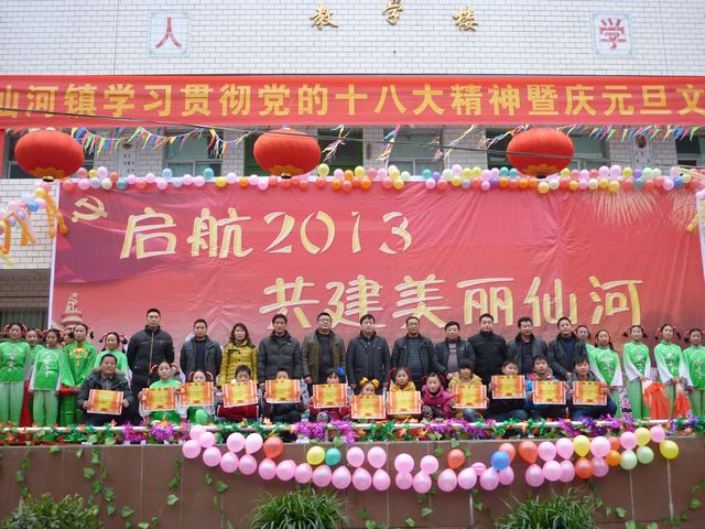 12月28日,在仙河镇初级中学操场举行“起航2013 共建美丽仙河”——仙河镇贯彻十八大精神暨2013年元旦文艺汇演。