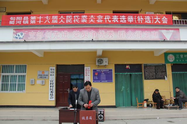 蜀河镇县人大代表向德刚同志因工作调动而辞去县人大代表职务,经镇人大请示县人大常委会和县委组织部同意,该镇在原三官选区(三官社区、郅家湾村)补选县人大代表一名。经过20余天精心筹备,1月23日,蜀河镇在三官选区(三官社区、郅家湾村)召开县十七届人大和镇十八届人大出缺代表补选大会,2826名选民中有2760人参加了投票选举,发出选票2760张、收回选票2760张,该镇党委书记文永明获得2708票赞成票,成功当选出席旬阳县第十七届人民代表大会代表。