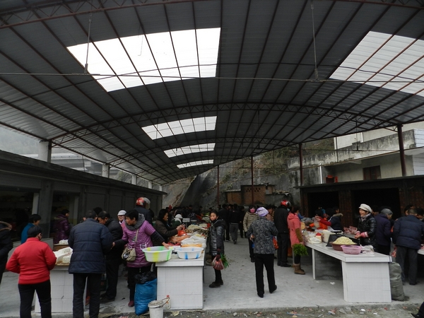 新的集贸市场占地面积500平方米,可容纳47个摊位、16套门面商铺。场内柜台铺白色瓷砖,干净明亮。市场按功能布局,分为蔬菜区、干货区、肉类区、水产区等,市场内干净整洁,为当地居民提供舒适便捷的购物环境。
