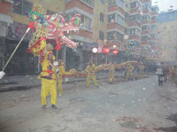 “金狮舞的喜盈盈,给全镇人民来拜年,各位新年过得好,人人脸上笑开颜,党的政策实在好,户户收入翻一番……”。从正月初八开始,每到夜幕,小河集镇鞭炮阵阵、锣鼓齐鸣,金狮、彩龙舞起来,秧歌、花伞扭起来,大红灯笼飘起来,欢快的彩船划过来,憨态可掬的大头娃娃跑过来,小孩子装扮的调皮毛驴蹦起来,幸福的歌儿唱起来……处处呈现出红红火火的热闹景象,人们以社火表演的方式来庆贺新春佳节,抒发对如今美好生活的无比赞美。这是该镇为人民群众献上的一道丰厚的民俗文化大餐,也是实施“文化兴镇”战略的实际行动。