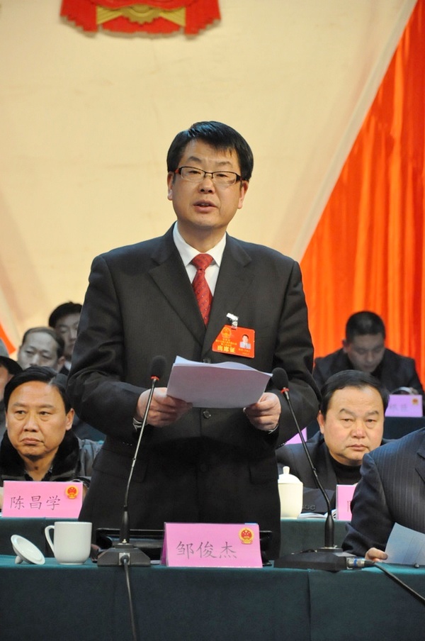 对2013年的工作,邹俊杰强调,一是要准确把握形势,促进和谐发展。全县上下一定要把握大势,按照市委三届三次全会的统一部署和县委十四届六次全会的总体部署,把握大势,坚定信心不动摇,发愤图强不懈怠,真抓实干不折腾,以更大勇气开拓进取,努力在经济增长的质量和效益上有新提高,在改革创新和扩大开放上有新突破,在保障和改善民生上有新业绩。二是要强化宗旨意识,凝聚发展合力。各位代表一定要积极反映民意,切实发挥好党和政府与广大群众之间的桥梁纽带作用,要自觉坚持党的领导,模范执行党的各项方针政策,在各自岗位上开拓创新,加倍努力,做好群众表率,努力成为推动全县经济快速发展的主力军。各级领导干部,更要勇挑重担,迎难而上,团结和带领广大干部群众,不断开创各项工作的新局面。三要发挥人大职能,推动工作落实。县人大及其常委会要切实增强责任感和紧迫感,认真履行宪法和法律赋予的各项职权,行使好重大事项决定权,加强工作监督、执法监督和强干部监督。坚持用制度管权管事管人,努力实现党管干部和人大监督的统一,监督人和监督事的结合,不断加强党内监督、民主监督、法律监督、舆论监督,让人民监督权力,让权力在阳光下运行,推动各项工作落到实处。四要加强党的领导,开创新的局面。各级党委要站在战略和全局的高度,把人大工作纳入党委的整体工作,支持和保证各级人大组织依法履行各项职责;要妥善处置同人大组织、人大代表的关系,勤过问,多支持。人大及其常委会要主动适应发展要求,推动人大工作在开拓中前进,在创新中提高。“一府两院”要虚心接受县人大及其常委会的监督,认真执行人大的决议决定,重大事项及时向人大汇报。各部门、各单位对人大代表提出的议案、建议、批评和意见,要及时办理,做到件件有落实,事事有回音,推进全县工作顺利开展。