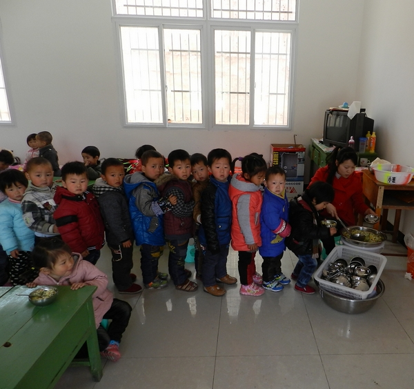 当笔者前往幼儿园时正值午饭时间,孩子们整齐列队,秩序井然的等待着“老师妈妈”们盛来的美味午餐。幼儿园分为大、中、小三个年龄段5个班级,可容纳200名幼儿。该幼儿园严格按照行政教育部门的规定,全部采用省统编教材,坚决克服“小学化”倾向。室内设有适合幼儿年龄特征的桌椅、图书架、各种图书等。同时,配有多媒体、电视机等先进的教学设备,户外设有滑梯等娱乐设备,为幼儿的成长教育及嬉戏玩耍提供了良好的环境。幼儿园拥有强大的后勤队伍,专业的餐饮工作人员,科学配餐,均衡饮食;园内还设有保安人员,为孩子的健康和人身安全提供了有力的保证。
