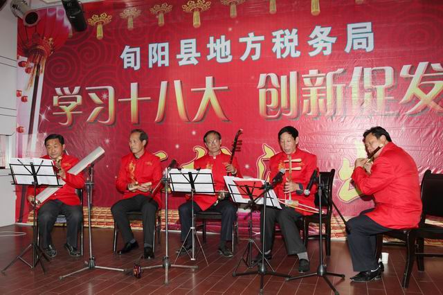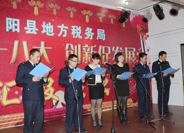 演出在一首高昂的《地税干部学习十八大》中拉开帷幕,五位退休干部用旬阳传统民间清唱的曲调,表达了对党的感恩情怀和对地税事业的挚爱,博得了全场阵阵掌声。税干和家属自创的《草原之夜》、《地税赞歌》、《向共和国纳税人致敬》等舞蹈、古筝、相声、小品,为观众献上了一台精彩纷呈的精神大餐。